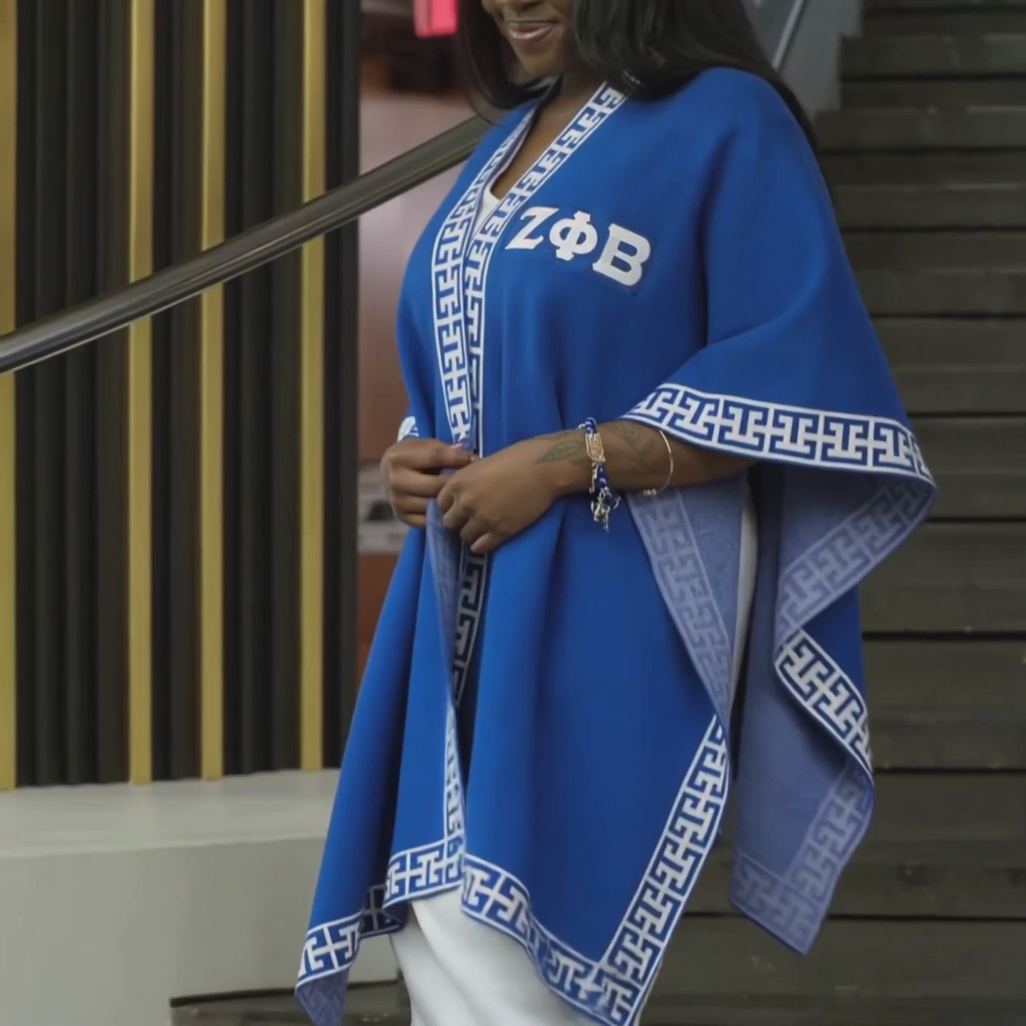 In comparison to standard sorority shawls on the market, The Stacey raises the bar with its attention to detail and premium materials. Unlike previous models, this shawl balances both fashion and function while highlighting Zeta Phi Beta’s iconic colors and patterns. Its design is perfect for campus events, formal gatherings, or casual wear, making it a must-have for members looking to express pride and unity in style.