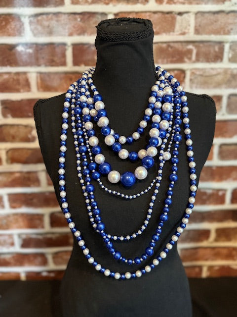 ZPB Sorority Blue White 7 Strand Pearl Necklace